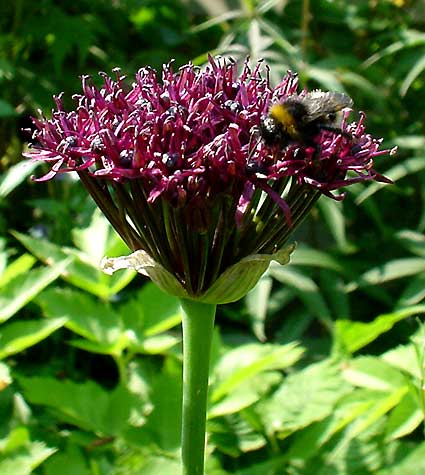 Hoogte: 70 cm Bloeitijd: Juni en juli Kleur: Donker aubergine-purper Plaats: Zon en halfschaduw, niet te nat Bijzonderheden: Hele mooie donkere kleur. De bloemetjes glimmen een beetje. De schermen worden geen ronde bollen zoals bij vele andere sieruien maar blijven omhoog gericht staan. Partners: Deze Allium staat bij mij heel mooi tussen het purperen blad van Geranium pratense 'ex Victor Reiter'. Ook mooi bij Heuchera's en planten met donkerblauwe bloemen (bijvoorbeeld Monnikskappen)
