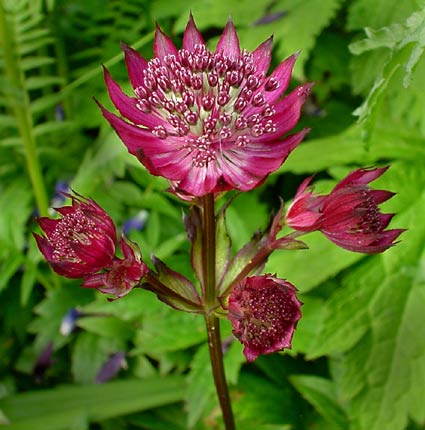 Hoogte: 70 cm Bloeitijd: Mei tot in september Kleur: Wijnrood Plaats: Zon of halfschaduw Bijzonderheden: Een van de donkerste Astrantia's. Ook een goede snijbloem, staat lang op de vaas. Partners: Bij de roos 'the Squire' staat hij heel mooi, maar ook bij lichtere kleuren doet deze plant het goed. Bij mij staat deze Zeeuwse Knoop mooi naast Salvia nemorosa 'Caradonna'. |