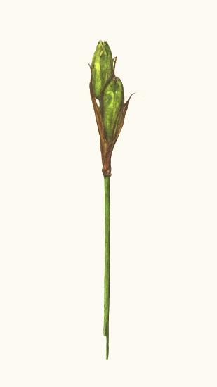 Aquarel (2004) Deze aquarel vind ik zelf erg mooi omdat hij zo simpel van vorm is. Volgend jaar wil ik nog een aquarel maken van de Iris in knop en ook een van de Iris in bloei. Als ze klaar zijn kunnen ze met z'n drietjes in een lijst. Een Iris drieluik zeg maar. |