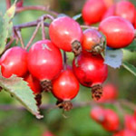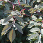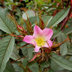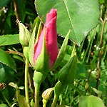 ROSA GLAUCA: Botanische roos met schitterend grijs-purper blad. De bloemetjes zijn klein, enkel en roze. In de herfst mooie donkerroodbruine bottels. De roos wordt redelijk groot (ca. 2 meter). |