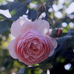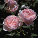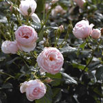HERITAGE: Engelse (Austin) roos (1984). Komvormige, middelgrote, goed gevulde bloemen. Buitenste bloemblaadjes heel licht, haast transparant, zilverroze, de blaadjes in het hart zijn rozer. Geurt zwaar, fruitig maar fris (citroen). Herbloeier die een goed vertakte, bossige struik vormt van ongeveer 1.30m. |