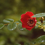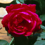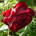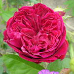 THE SQUIRE: Engelse (Austin) roos (1977). Komvormige goed gevulde, zeer donkerrode, zwaar geurende, mooie bloemen. Jammer genoeg niet bepaald een mooie struik vormend, weinig blad, veel stekels. Bloeit door maar niet met heel veel bloemen. Hoogte is niet meer dan 1 meter. |