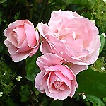 NEW DAWN: Klimroos (1930). Een roos die je overal ziet maar ze is dan ook wel heel erg mooi en sterk. Mijn eerste roos. Halfgevulde middelgrote, licht geurende, zilverroze bloemen. Doorbloeier die minstens 5 meter lang kan worden. |
