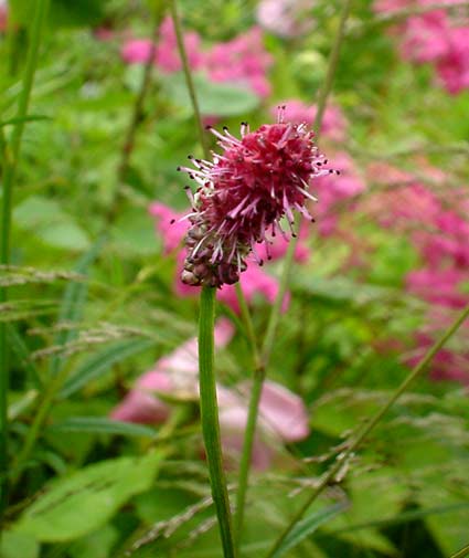 Hoogte: 90 cm Bloeitijd: juni-juli Kleur: wijnrood met roze 'haren' Plaats: zon, normale en vochtige grond Bijzonderheden: slanke stengels die zich vertakken met aan de uiteinden grappige roze-rode rupsen. Partners: Bij mij staat deze Pimpernel heel mooi tussen Deschampsia cespitosa 'Bronzeschleier', Anemone 'Hadspen Abundance' (eerst het blad daarvan), roos 'Dainty Bess', Papaver rhoeas 'Parelmoer' en Persicaria amplexicaulis 'Alba'. |