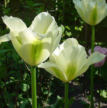 Hoogte: 40 cm Bloeitijd: April en mei Kleur: Crèmewit met groene veertjes Bijzonderheden: Een mooie tulp die door de groenige kleur op alle plaatsen goed staat. Partners: Hosta's, roos 'Moonlight', andere tulpen, zoals de wat later in bloei komende 'Maureen' en Lenteklokken (Leucojum aestivum 'Gravetye Giant') staan allemaal heel mooi bij deze groene tulp. |
